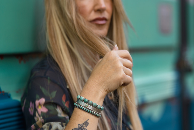 The pieces are crafted in precious metals with beads and natural stone accents. We love turquoise jewelry and wanted to pass some of the exquisiteness of turquoise onto you, our customers. Turquoise adds that perfect pop of color to any outfit, so you can wear it with everything.
